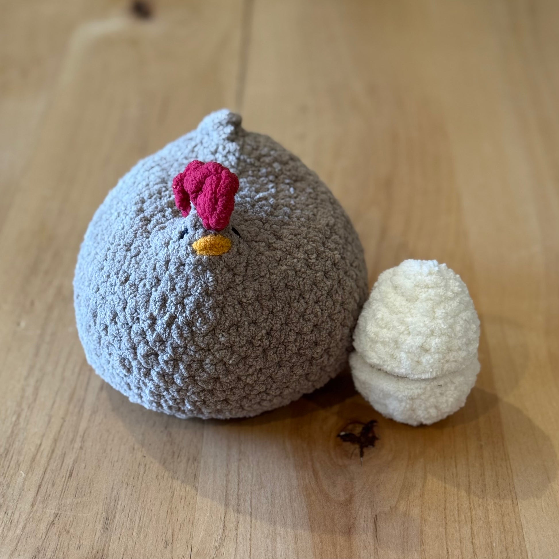 Mama Chicken and her hatching baby chick are made completely of polyester baby-safe due to the face being embroidered. Mama can hold up to three (3) eggs containing baby chicks, but this set only comes with one (1). Additional baby chicks and their eggs can be purchased separately.